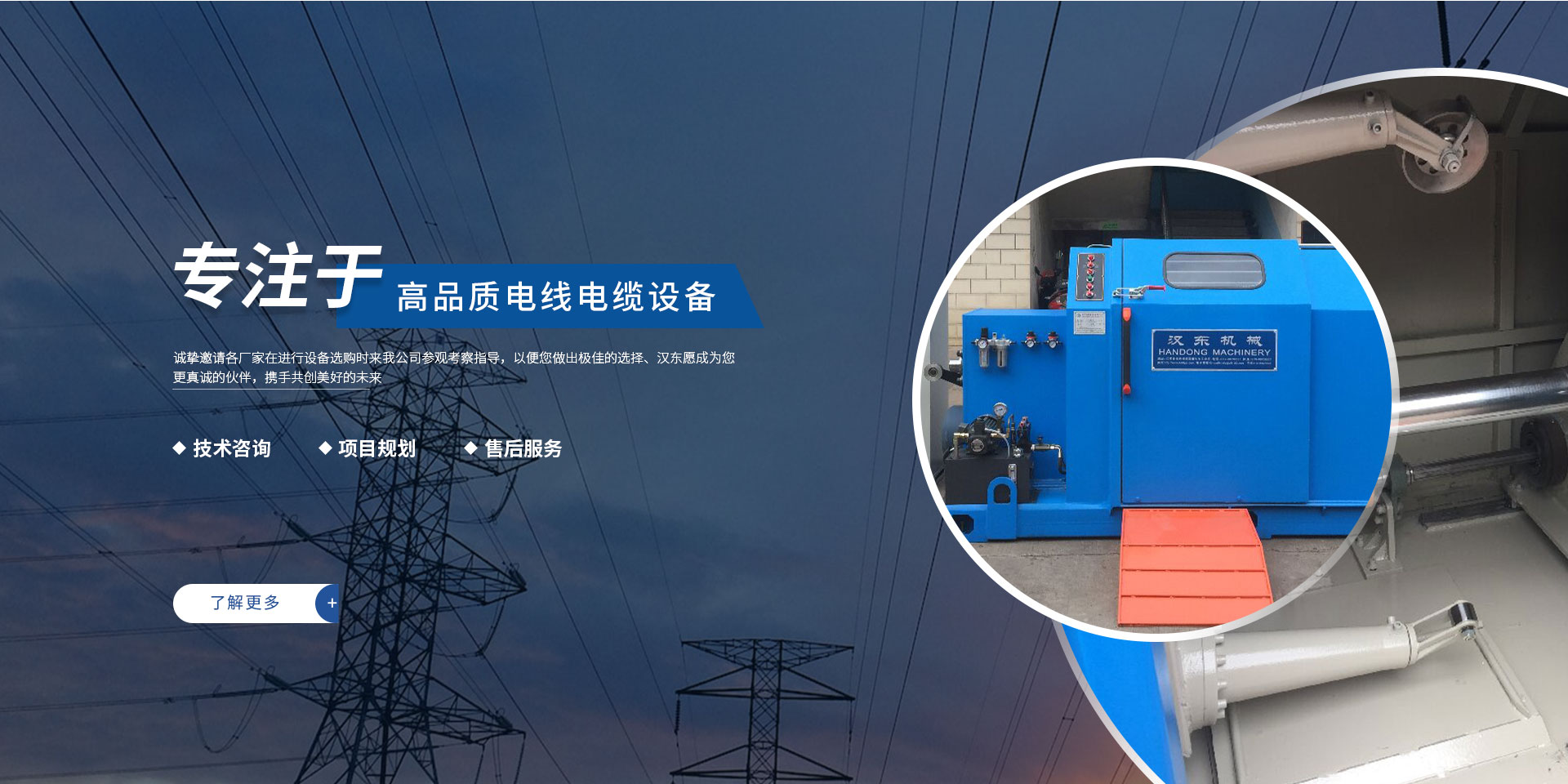 常州漢東機械始創(chuàng)于2006年,是集電線電纜機械設計、開發(fā)、制造、安裝、調試為一體化的高科技企業(yè)。本公司自開業(yè)以來,積極引進日本,歐美等國外電線電纜設備之先進技術,先后成功推出了達到行業(yè)先進水平的電線電纜設備,主要產(chǎn)品有擠出、繞包、束線、成纜等電線電纜固定設備。在提供系統(tǒng)設備的同時,還向客戶提供售前技術咨詢、項目規(guī)劃、以及售后服務。我公司本著“以人為本、科技先導、用戶為上”的宗旨,為客戶提供牢靠的產(chǎn)品與省心的服務。漢東愿成為您更真誠的伙伴,攜手共創(chuàng)美好的未來! 了解更多+大核心優(yōu)勢